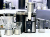 این آب میوه گیر چهار کاره می باشد و برای هر یک از کاربرد های آن پاچ و کاسه جداگانه از جنس شیشه پیرکس نشکن و پایه استیل و اتصالات اهنی می باشد که به موتور آن کاملا کیپ می شود .