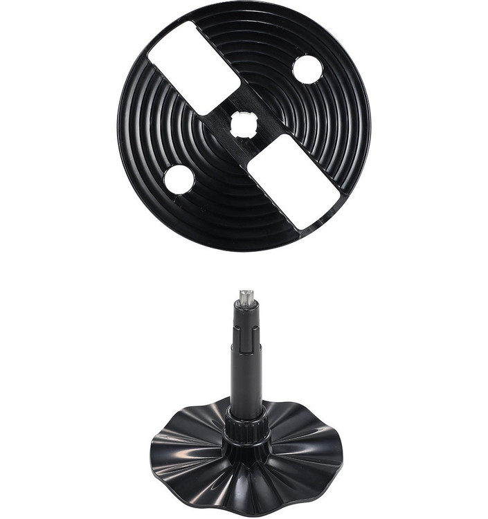 مخزن آن از جنس شیشه شفاف که به راحتی در هنگام خرد کردن مواد غذایی قابل مشاهده است. در زیر این دستگاه پایه ی دایره ای شکل به منظور جلوگیری از لغزش دستگاه در هنگام کار تعبیه شده است.