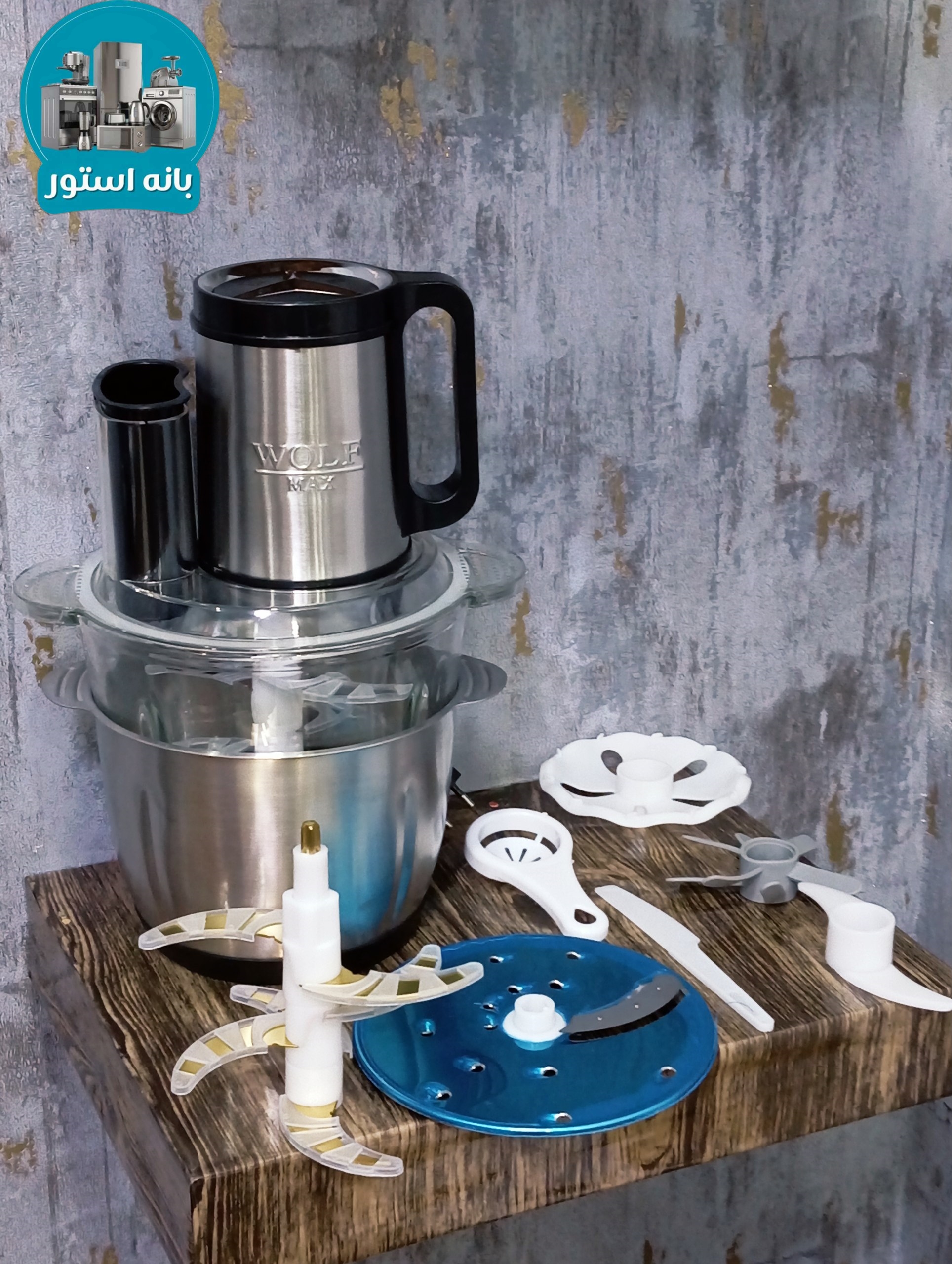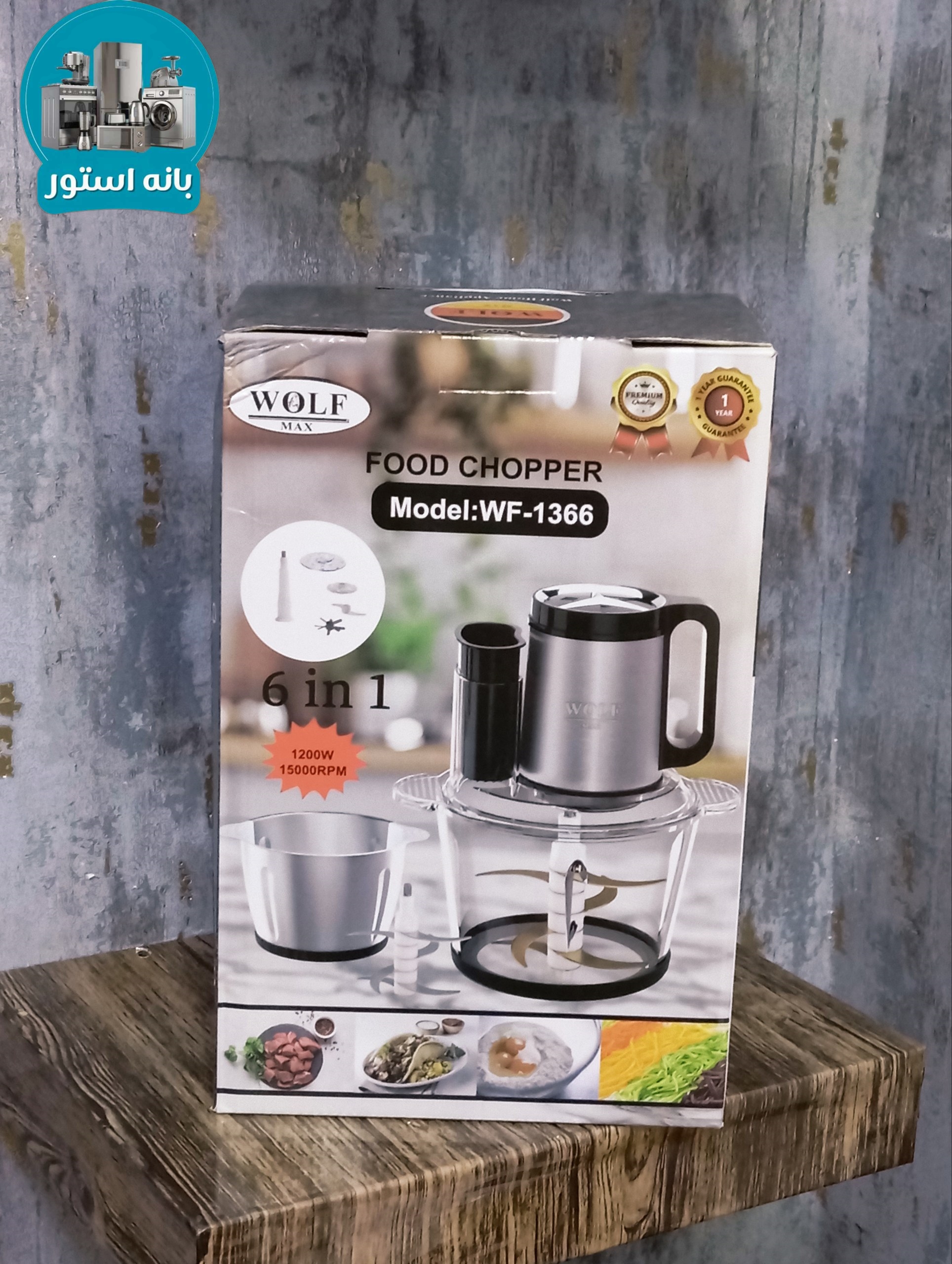 🥗 خردکن ۶ کاره دوکاسه ولف مکس مدل WF-1366 | قدرت و کارایی حرفهای از بانه استور
