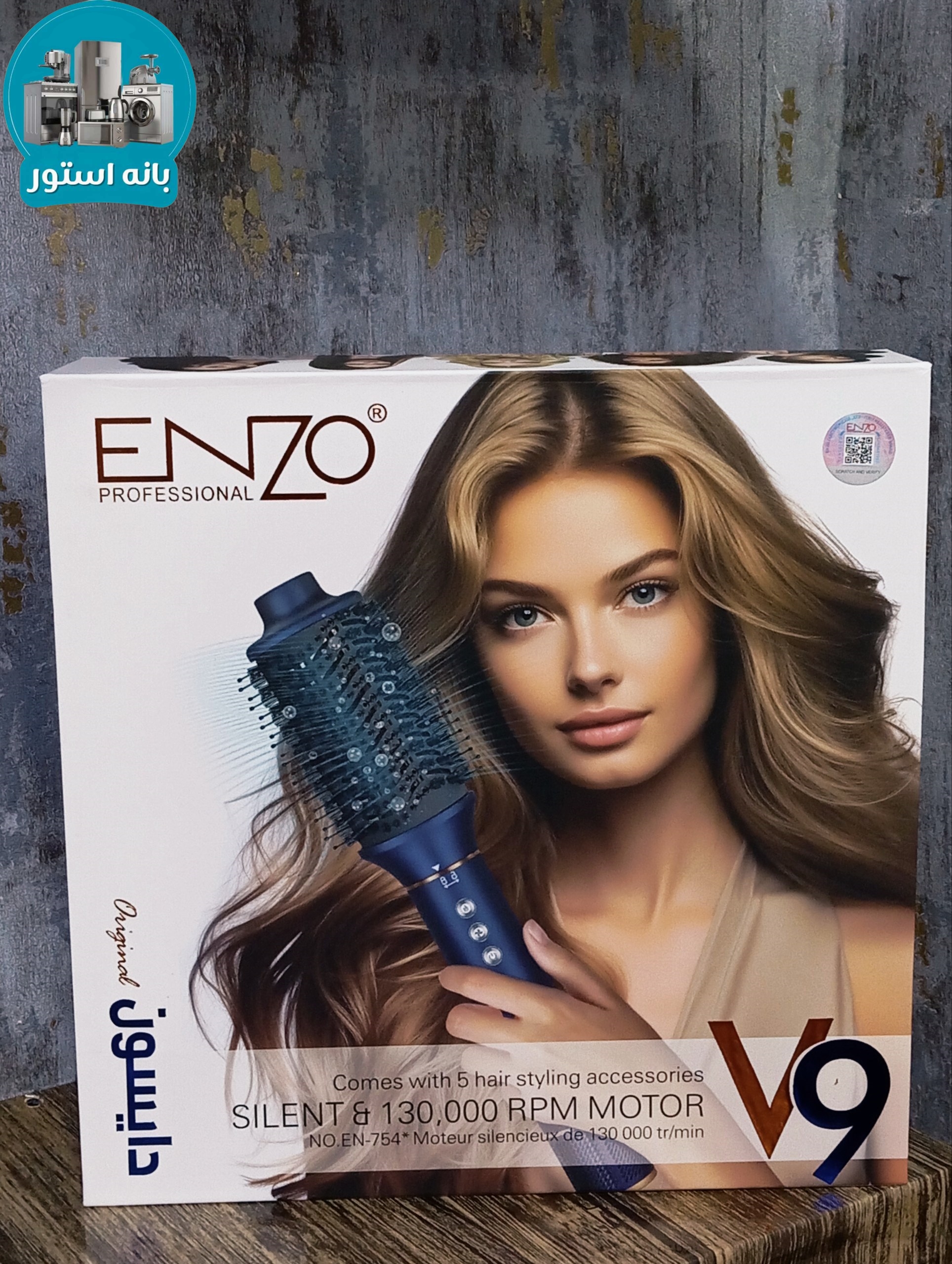 سشوار ENZO مدل EN-754 V9 با ۵ سری متنوع، امکان خشککردن، صافکردن، فر کردن، حجمدهی و حالتدهی حرفهای مو را تنها با یک دستگاه فراهم میکند؛ انتخابی اقتصادی و هوشمند از بانه استور.
