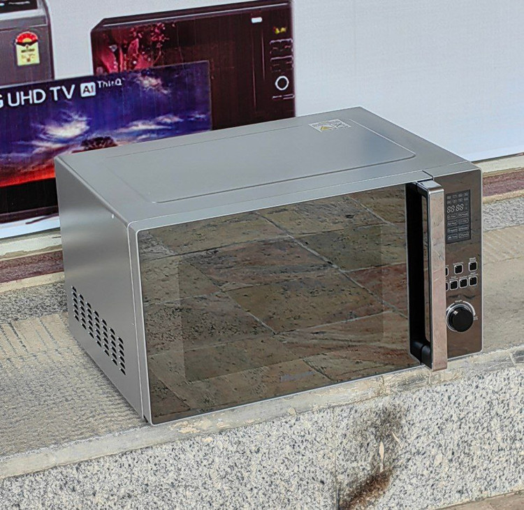 ماکروویو هایسنس در رنگ استیل با درب آینه ای است. درب دستگاه طرح آینه ای و دستگیره آن کروم نقره ای براق است. جنس داخلی ماکروویو استیل لعاب دار میباشد که امکان تمیز کردن راحت ماکروویو را برای شما فراهم می نماید. ماکروویو هایسنس مدل H45MOMK9 یک صفحه نمایش بزرگ LED دارد و تنظیمات آن به وسیله دکمه های تعبیه شده انجام می شود. صفحه گردان این ماکروویو هنگام پخت و پز، غذا را می چرخاند تا به طور یکنواختی آماده شود.